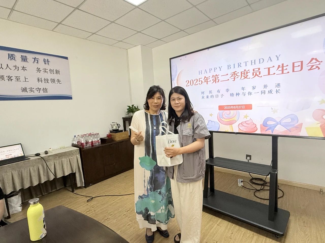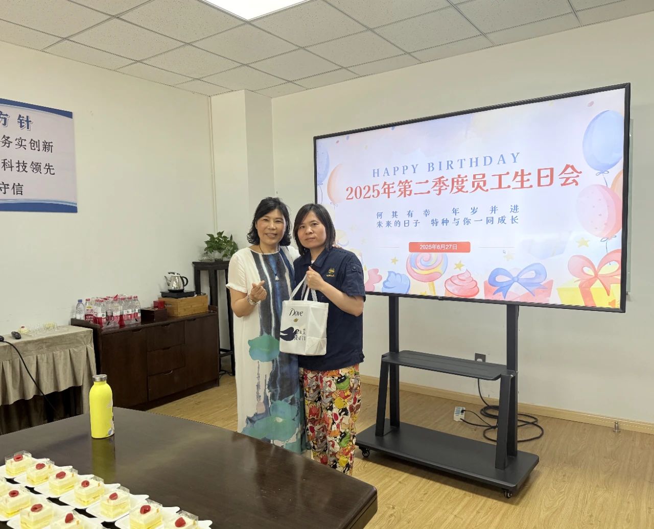 Ngoài những lời chúc sinh nhật chân thành và những chiếc bánh ngọt ngào, công ty đã chuẩn bị chu đáo những món quà cá nhân cho mỗi người chủ sinh nhật! Khi những món quà được giao, những nụ cười ngạc nhiên và vui mừng ngay lập tức thắp sáng khuôn mặt của họ. Cử chỉ chăm sóc độc quyền này đóng vai trò là sự công nhận ấm áp nhất cho công việc tận tâm của mọi người.