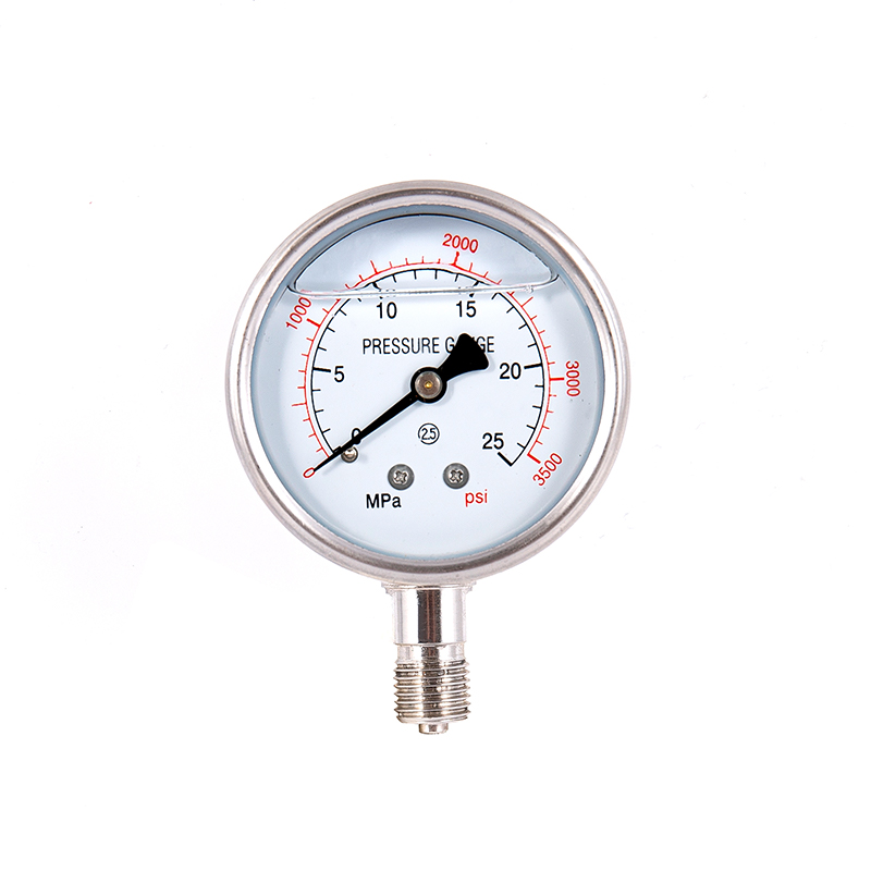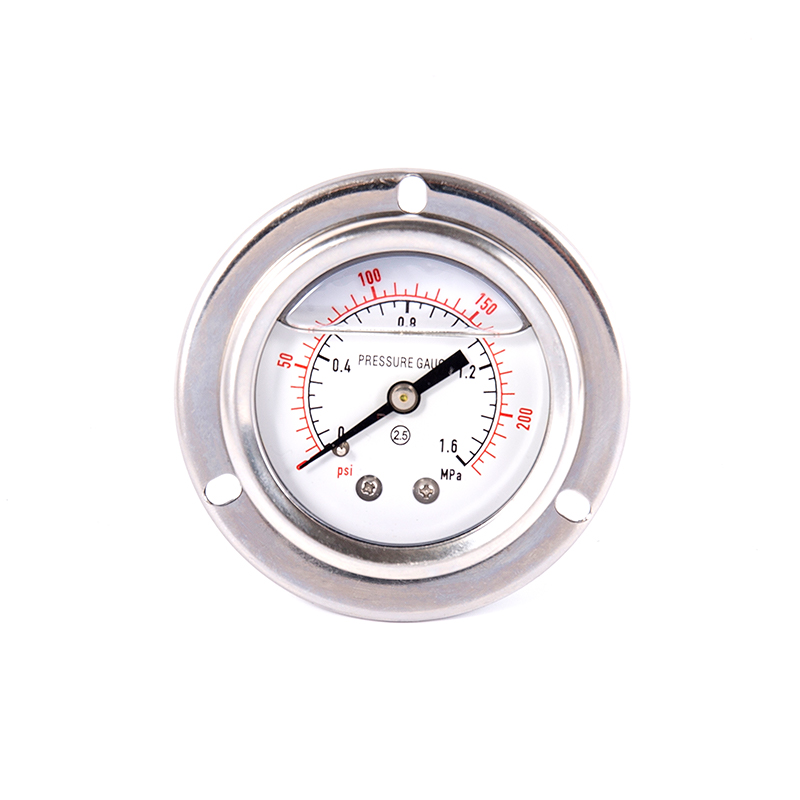 Tối ưu hóa phản hồi động: Đối với các ứng dụng liên quan đến áp suất dao động như máy nén và máy bơm, đồng hồ đo áp suất chống sốc đạt được điều này bằng cách mở rộng đường chuyển động của con trỏ (ví dụ: bằng cách sử dụng ống lò xo xoắn ốc), chuyển đổi các dao động áp suất tức thời thành thay đổi dần dần, đảm bảo độ ổn định lâu dài với độ chính xác ±1,6%.