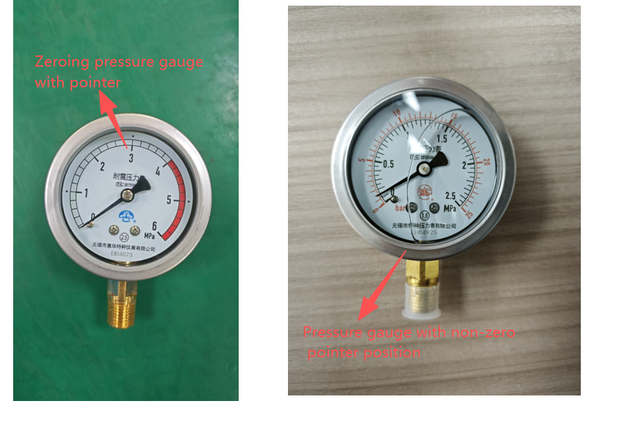 | 3 | Chênh lệch áp suất giữa bên trong và bên ngoài thùng chứa | Con trỏ của đồng hồ đo áp suất hiển thị sự dịch chuyển bất thường, dẫn đến chỉ báo không chính xác. Vấn đề này trở nên rõ ràng hơn khi phạm vi của đồng hồ đo áp suất giảm. Do người dùng chưa hiểu rõ nên khả năng xảy ra sự cố này cao hơn. Sau khi hoàn thành đồng hồ đo áp suất và lắp nút dầu, bên trong đồng hồ đo sẽ hình thành một khoảng trống kín. Tại thời điểm này, áp suất khí quyển bên trong khoang phù hợp với áp suất khí quyển bên ngoài. Khi áp suất khí quyển bên ngoài thay đổi, sẽ tạo ra sự chênh lệch áp suất bên trong và áp suất | Nói chung, khi sự cố này xảy ra, điều đó cho thấy độ dịch chuyển của con trỏ zeroing tương đối nhỏ. | ||||||