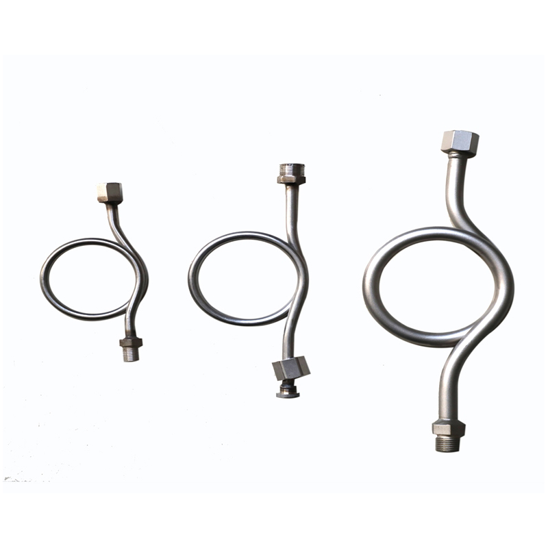 Thiết bị ngưng tụ đồng hồ đo áp suất, còn được gọi là khuỷu tay áp suất hoặc ống đệm, là một thành phần được sử dụng để kết nối đồng hồ đo áp suất với thiết bị hoặc đường ống để đo áp suất. Nó được thiết kế để đệm tác động tức thời của môi trường đo được trên ống lò xo của máy đo áp suất, đồng thời, nó có thể làm giảm nhiệt độ của môi trường đo được. Nó là một thiết bị để bảo vệ đồng hồ đo áp suất.