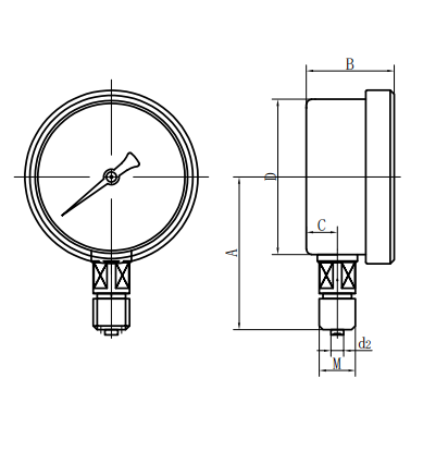 | YG100 -Ⅱ | 83 | 44 | 34 | Φ 100 | / | / | Φ 6 | M20 × 1.5 |