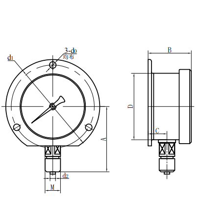 | YQ100- Ⅱ | 83 | 44 | 34 | Φ 100 | / | / | Φ 6 | M20 × 1.5 |